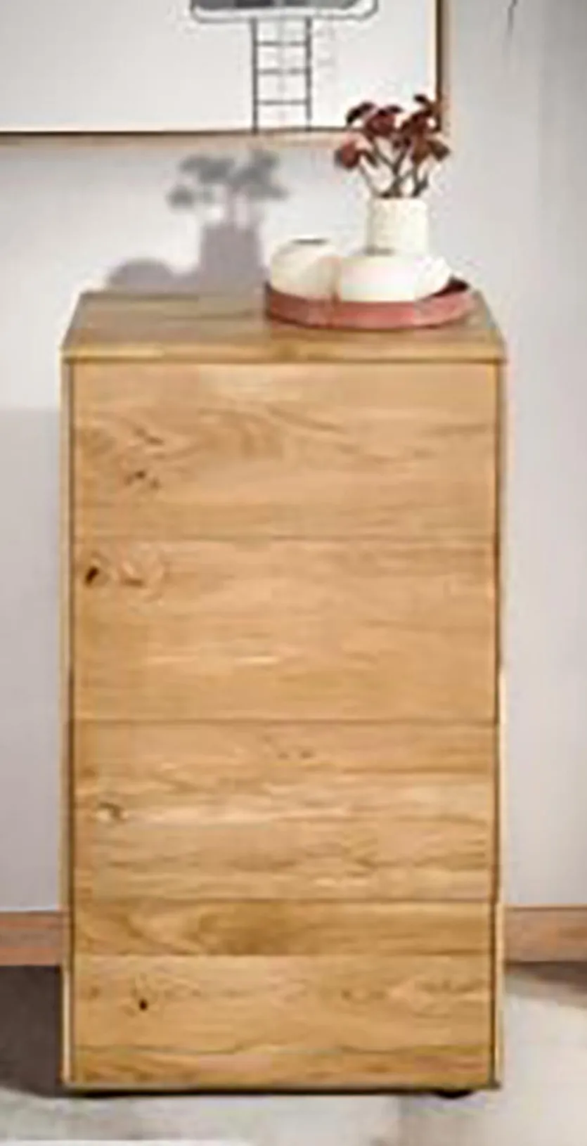 Mit der Kommode Skagen von G+K erhalten Sie ein Möbelstück, das sich durch hohe Qualität und natürlichen Charme auszeichnet. Der kleine Schrank ist vielfältig zu nutzen, egal, ob im Eingangsbereich, im Schlafzimmer oder als Ergänzung der Wohnzimmereinrichtung. Hinter einer Tür und in einer Schublade bietet die Kommode Skagen Platz für Schuhe, Accessoires, Dokumente, Spiele und sonstige Dinge.