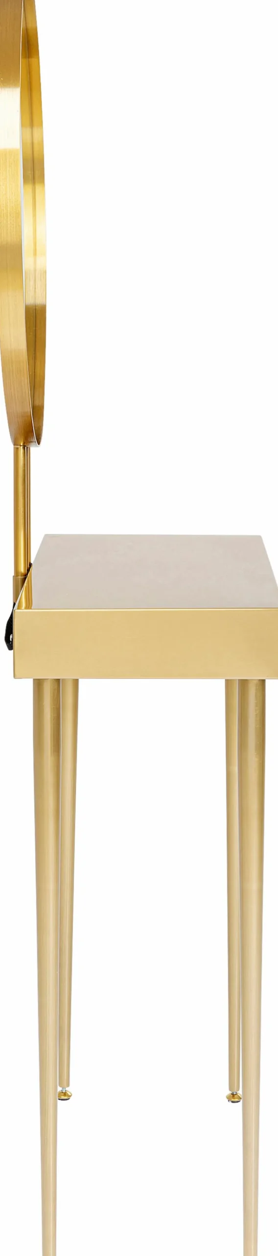 Die Konsole Art 84839 der Marke KARE zieht mit ihrer luxuriösen Optik die Blicke auf sich. Sie ist aus glänzendem und gebürstetem Stahl gefertigt und begeistert durch eine geschmackvolle Formensprache. Praktisch ist bei der Konsole Art 84839 von KARE der große Spiegel, dank dem Sie sich beim Schminken oder Frisieren immer im Blick haben.