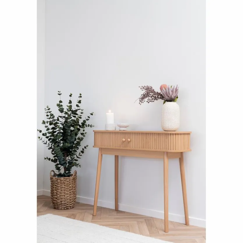 Der attraktive Konsolentisch Nikko begeistert als charmanter Blickfang. Seine schicke Formgebung und die bezaubernden Details sorgen für stilvolle Akzente. Präsentieren Sie beispielsweise schöne Dekorationen auf dem hübschen Beistelltisch. Oder nutzen Sie den schönen Konsolentisch Nikko als praktische Ablagemöglichkeit für Ihre Accessoires.