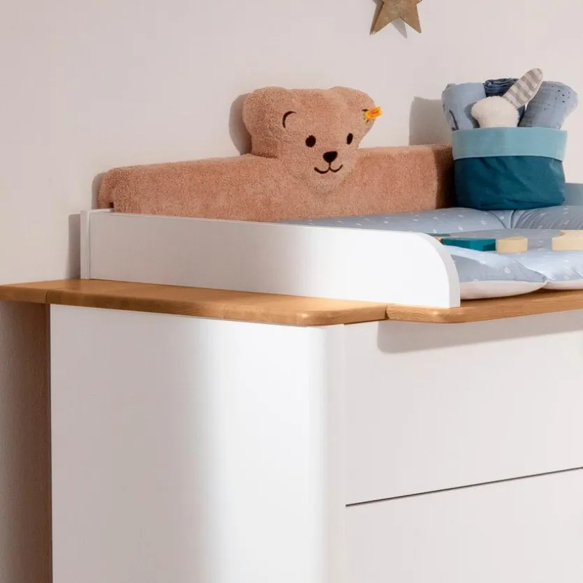 Mit dem Wickelkommoden-Kopfschutz Lotte & Fynn von Paidi wird effektiv verhindert, dass sich ihr kleiner Liebling beim Windelwechseln den Kopf stößt. Zu diesem Zweck platzieren Sie den Bären ganz einfach an der Wand, um mit seiner soften Beschaffenheit Sicherheit zu garantieren. Außerdem sorgt der Wickelkommoden-Kopfschutz Lotte & Fynn der Marke Paidi für einen netten Eyecatcher im Zimmer.