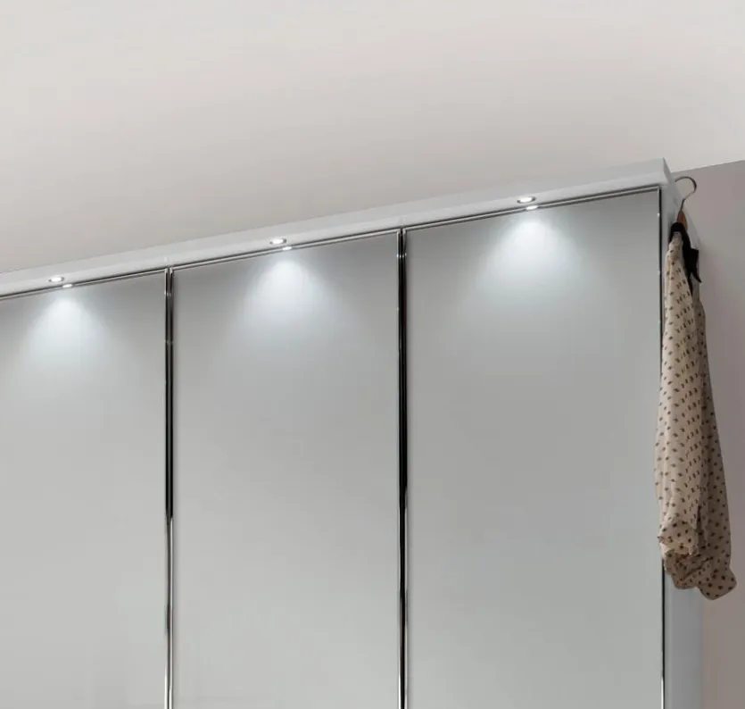 Mit der Kranzleiste Shanghai 2 wird jeder Drehtüren- und Funktionsschrank von Wiemann in das rechte Licht gerückt. Neben einem erstklassigen Design setzten die sechs Leuchten den mordernen Stil des Schrankes akkurat in Szene. So erstrahlt das heimische Schlafgemach in einer klassischen Optik. Die Wiemann Kranzleiste Shanghai 2 ist optional in verschiedenen Längen erhältlich.