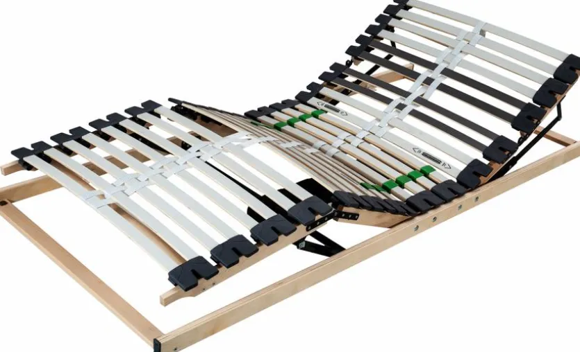- Mit 14 Doppellattenelementen und flexible, bis an den Rand führende zur Abfederung durch holmüberlagernde Federungs-Duo-Kappen aus Kautschuk