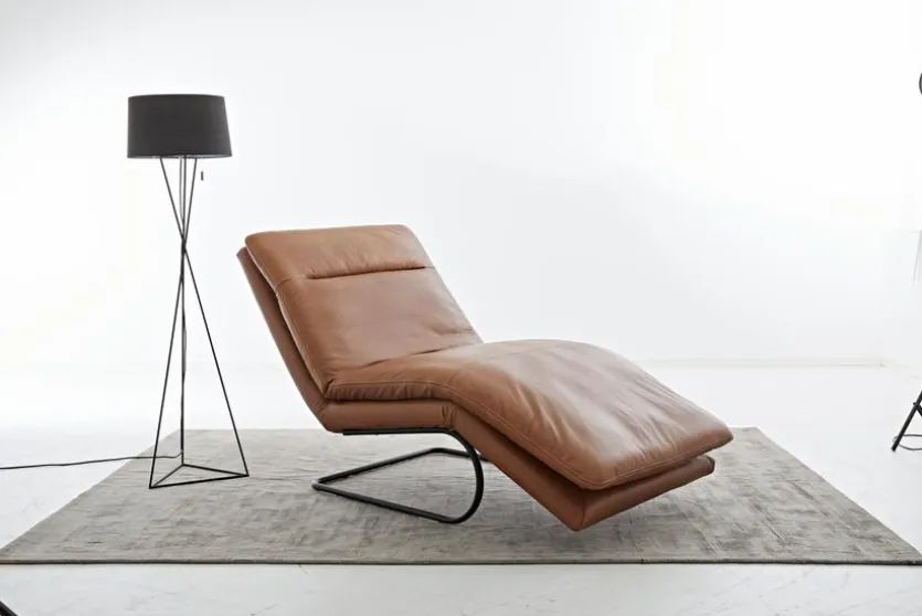 - Bezug aus Leder (Z79) in latte macchiato (52) mit beiger Kontrastnaht, Füße Freischwingergestell (B2) in schwarz (M99)