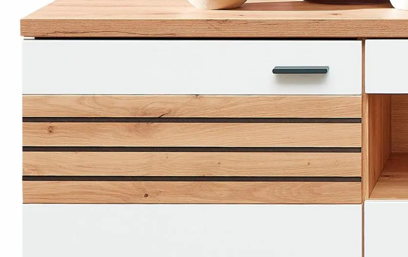 - Korpus aus Holzwerkstoff (MDF) in matt Weiß bzw. Artisan Eiche Nachbildung