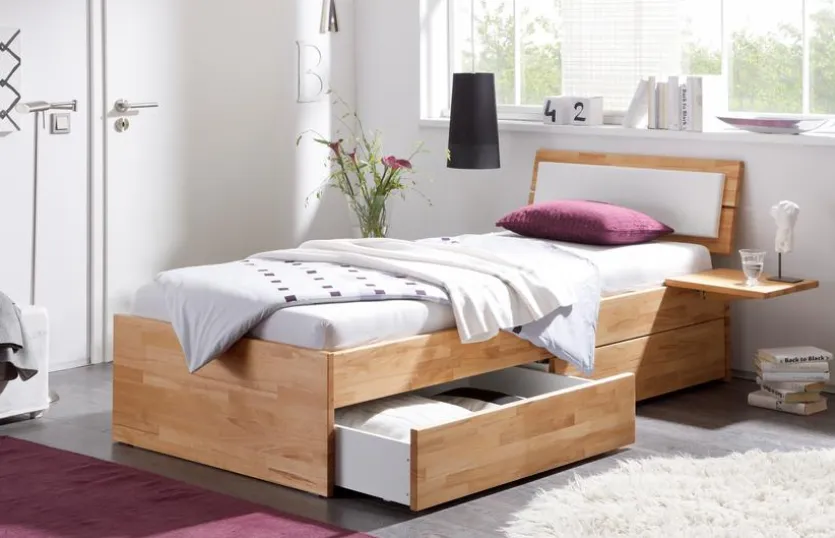 Ein erholsamer Schlaf ist unerlässlich, wenn Sie ausgeruht und fit in den Tag starten möchten. Mit dem Massivholzbett Spazio von HASENA sind beste Voraussetzungen für eine komfortable Schlafstätte geschaffen. Dank Bettauszügen ist auch für praktischen Stauraum gesorgt. Das Massivholzbett Spazio der Marke HASENA präsentiert sich in der Ausführung Kernbuche natur.