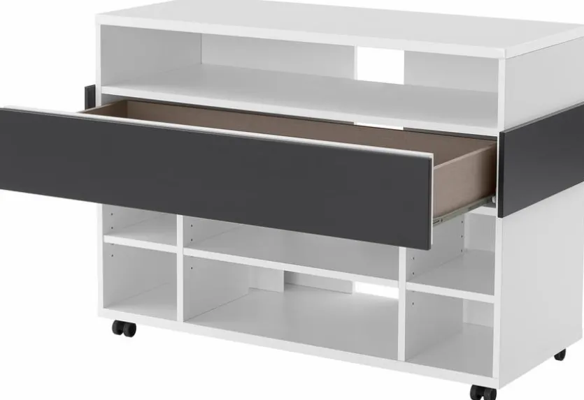 Für das Fernsehgerät, Receiver und Zubehör bietet Ihnen das Medienelement Clip aus dem Hause Röhr sehr viel Platz. Die geradlinigen Formen und die farblichen Absetzungen verleihen diesem TV-Lowboard eine ausgesprochen trendige Optik. Daher eignet sich das Medienelement Clip ideal für den modernen Wohnstil.
