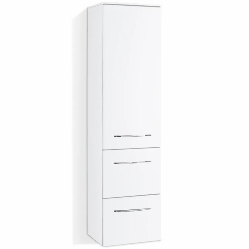 Modernität und Funktionalität – der Midischrank Cassca schafft es, all das gekonnt miteinander zu kombinieren. Durch seine zwei Auszüge und die Drehtür bietet er genug Stauraum, um alle Utensilien unterzubringen. Weitere Glas E-Böden im Inneren unterstreichen das klare Design. Äußerlich besticht der Midischrank Cassca vor allem durch verchromte Griffe und die hochglänzende Lackierung und lässt sich somit problemlos in bereits vorhandenes Interieur integrieren.