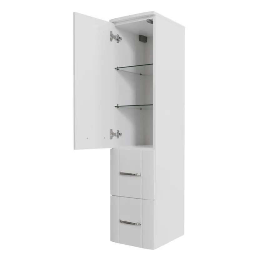 Der Midischrank PE 3006 von Pelipal besticht nicht nur durch sein dezentes Design, sondern bietet außerdem noch einiges an zusätzlichem Stauraum. Zwei Auszüge und eine Drehtüre helfen dabei, für Ordnung zu sorgen und verschiedene Utensilien zu verstauen. Zudem lässt sich der Midischrank PE 3006 stehend, aber auch hängend verwenden und bietet so verschiedene Gestaltungsmöglichkeiten.