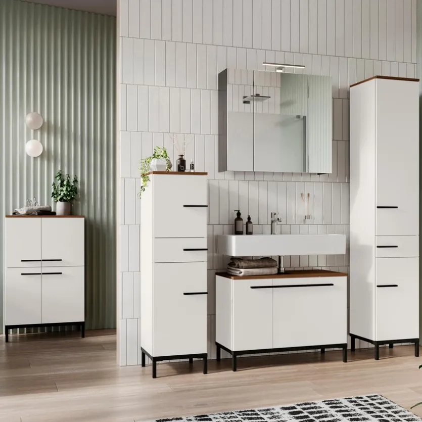 Mit dem Midischrank Yonkers der Marke Germania schaffen Sie in Ihrem Badezimmer zusätzlichen Stauraum, damit Ihre Wohlfühloase stets perfekt aufgeräumt aussieht. Da die Kanten des Möbels mit einem hochwertigen ABS-Schutz verkleidet sind, ist der Schrank besonders robust und widerstandsfähig. Ein weiterer Vorteil ist, dass der Midischrank Yonkers über Türen verfügt, die sich beinahe geräuschlos schließen lassen.