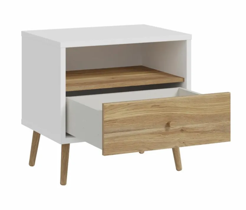 Farbe: Weiß / EicheMaterial: DekorGröße: Breite: 59,80 cm, Höhe: 57,70 cm, Tiefe: 41,50 cm