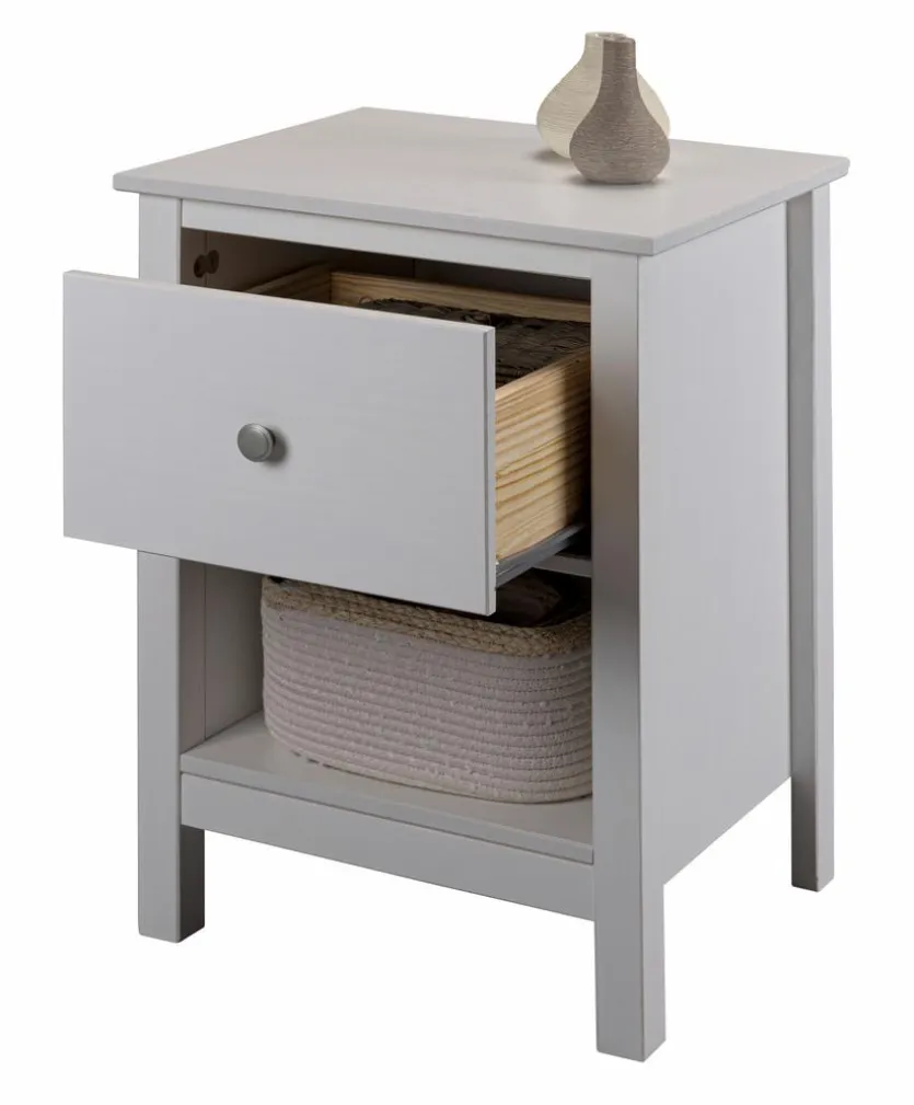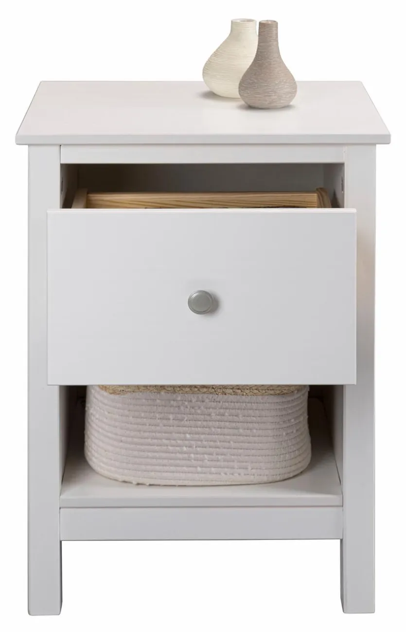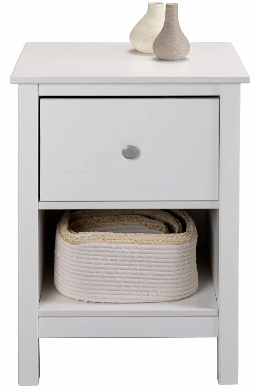 Mit der Nachtkommode Chilly aus dem Hause Inter Link erhalten Sie ein kompaktes Möbelstück im ansprechenden Retro-Chic. Der Nachttisch garantiert Ihnen, dass Sie zur späten Stunde viele Utensilien griffbereit haben. Dafür bietet Ihnen die Nachtkommode Chilly eine große Ablage, eine Schublade und ein offenes Fach.