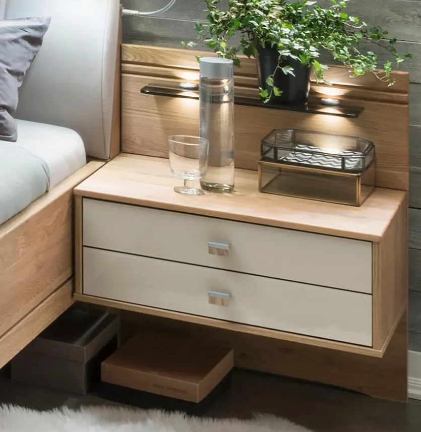 Der aus dem Hause Wiemann stammende Nachttisch Kiruna hat eine moderne und edle Optik. Dazu trägt auch die in Champagnerfarben gehaltene gläserne Front der Nachtkonsole bei. Zudem bietet der Nachttisch Kiruna der Marke Wiemann viele Ablage- und Staumöglichkeiten, um persönliche Gegenstände unterzubringen.