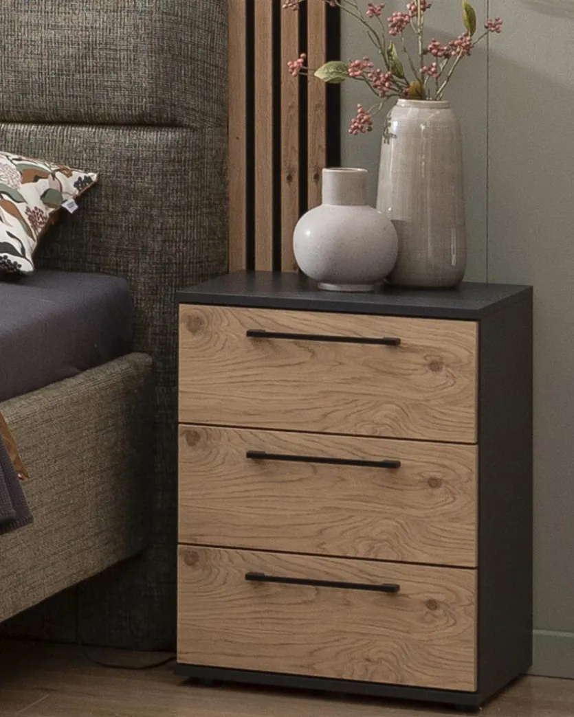 Mit dem Nachttisch Malaga von CASEDO lässt sich das Einrichtungsensemble Ihres Schlafzimmers auf einladende Art und Weise komplettieren. Auf der Nachtkonsole ist genügend Platz für beispielsweise eine Lampe, Bettlektüre und einen Wecker. Zudem verfügt der Nachttisch Malaga über Schubkästen, in denen Sie Medikamente, Ladegeräte, Schlafmasken und vieles mehr ordentlich und organisiert aufbewahren können.