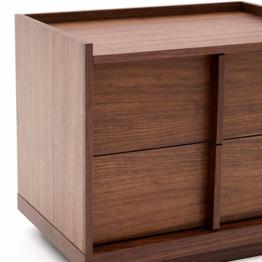 Mit dem Nachttisch Onix aus dem Hause Kave Home bereichern Sie Ihr heimisches Schlafzimmer auf besonders stilbewusste Art und Weise. Vor allem das klar strukturiere Design und die dunkle Walnuss-Optik machen diese Nachtkonsole zu einem attraktiven Blickfang. Darüber hinaus bietet der Nachttisch Onix reichlich Platz für Bücher, Hygieneartikel oder etwa Zeitschriften.