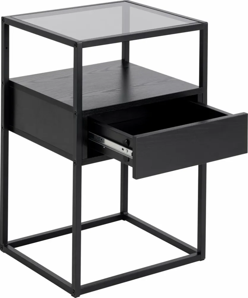 Der Nachttisch Randolf von Actona ist der ideale Partner für Ihr Schlafzimmer. Mit ihren großzügigen Maßen bietet die Nachtkonsole ausreichend Platz für persönliche Gegenstände. Das zeitlose Design und die hochwertige Verarbeitung machen den Nachttisch Randolf zu einem echten Blickfang. Dank des geräumigen Schubfachs und der gläsernen Ablagefläche haben Sie alles Wichtige stets griffbereit.