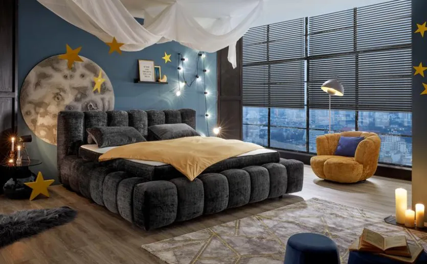 Mit seiner voluminösen Absteppung verleiht das Polsterbett Bexley 180×200 cm jedem Schlafzimmer eine luxuriöse, gemütliche Optik. Es kommt in allen Wohndesigns herrlich zur Geltung. Komfortsuchende können sich bequem am weichen Kopfteil anlehnen, wenn sie im Polsterbett Bexley 180×200 cm entspannt im Sitzen lesen oder Filme ansehen möchten.