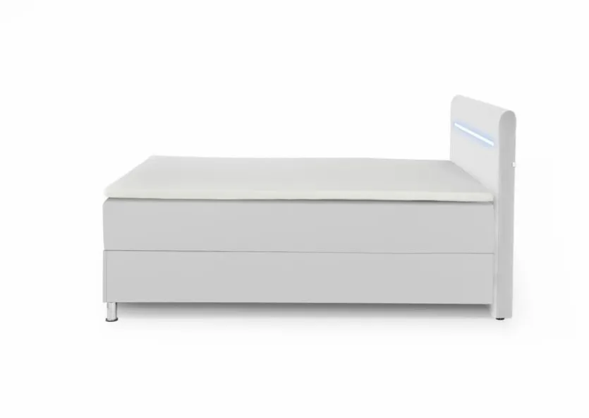 - Inkl. 1 frontal klappbarem Bettkasten, Kopfteil inkl. LED-Beleuchtung in blau