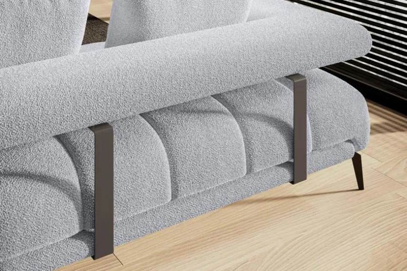 - Bezug aus Stoff (Bubble) in hellgrau (07), Füße Metall schwarz