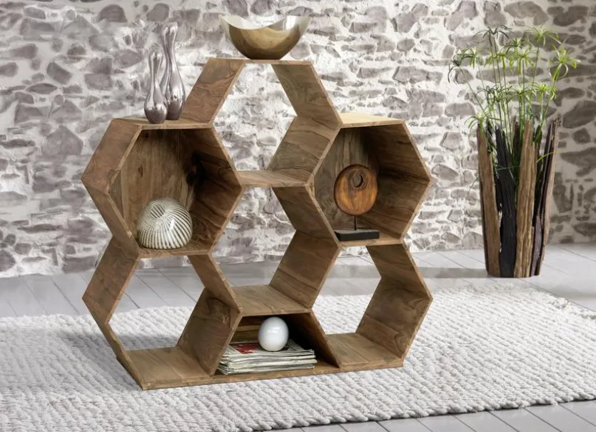 Das Regal Diamond von WOLFMÖBEL ist ein Möbelstück der besonderen Art. Das hochwertige Wandregal erinnert durch seine Form und Aufbau an eine Bienenwabe. Dunkles Holz lässt das Möbelstück auch besonders hochwertig wirken. Mit dem Regal Diamond von WOLFMÖBEL haben Sie einen praktischen Eyecatcher für zu Hause.