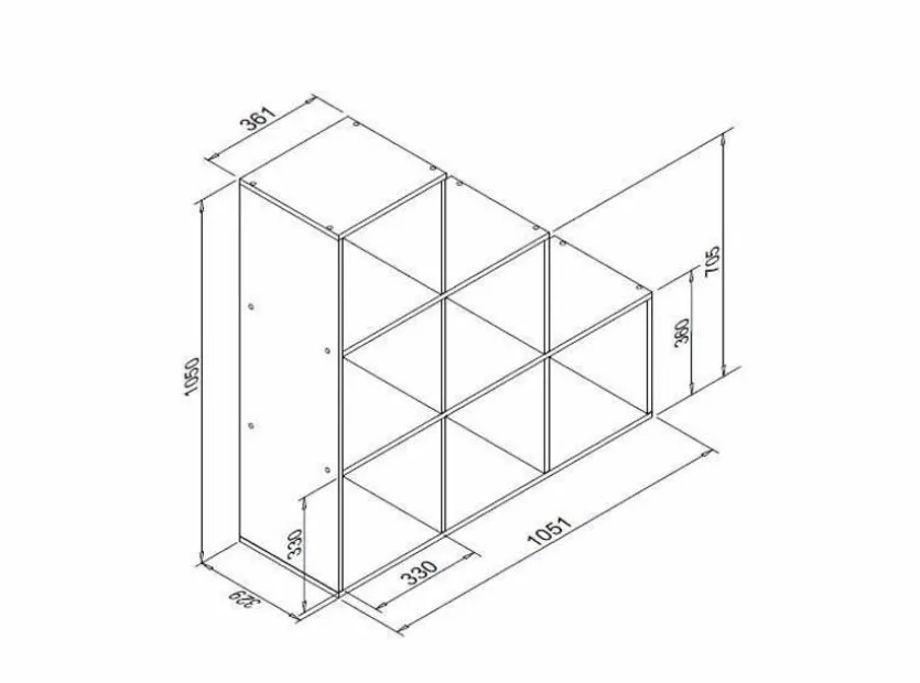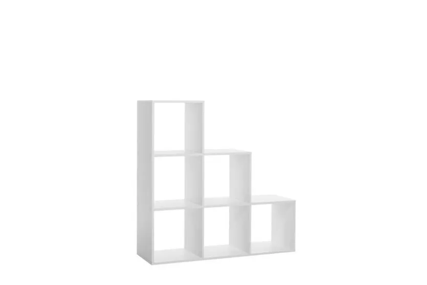 Drei Stufen bilden das attraktive Regal Udine, das aus sechs Ablagefächern besteht. Ebenso kann das geschmackvolle Wandregal mit den beidseitig offenen Fächern als Raumteiler ein Zimmer in zwei Bereiche unterteilen. Das charmante Regal Udine bietet viel Stauraum für Bücher und dekorative Objekte.