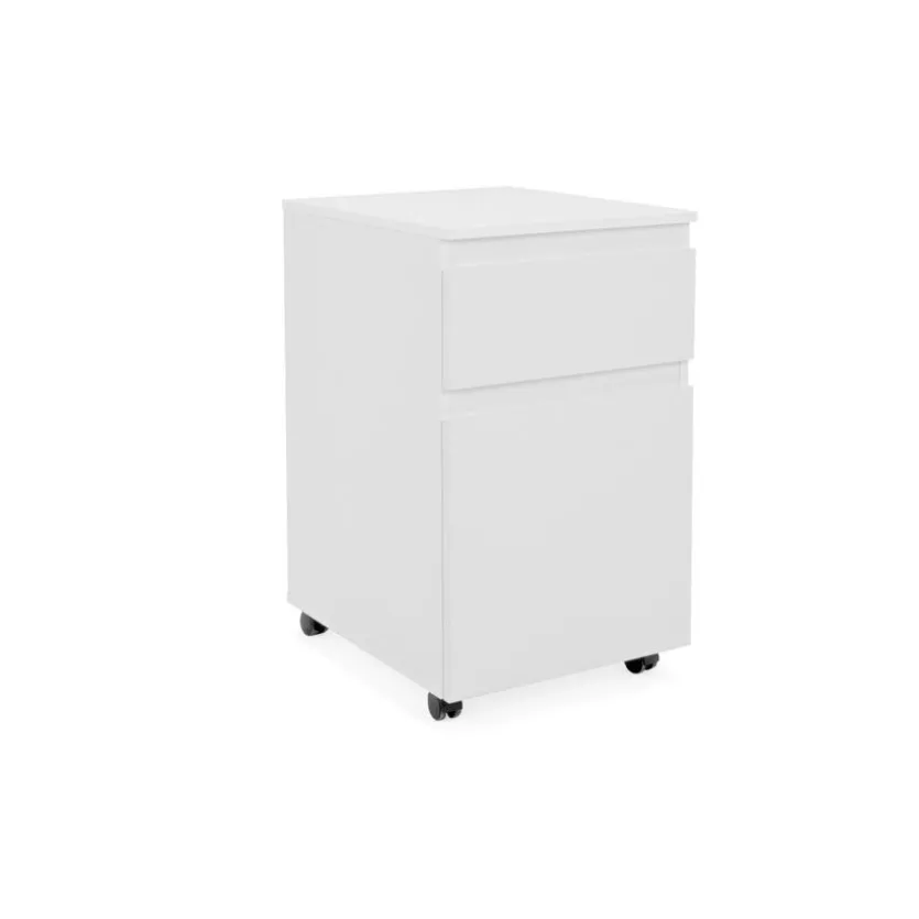 - Aus Holzwerkstoff (Spanplatte) mit kratzfester Melaminharzfolie in weiß matt