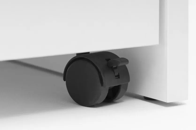 - Inkl. 4 schwarzen Rollen (2 davon mit Feststellbremse)