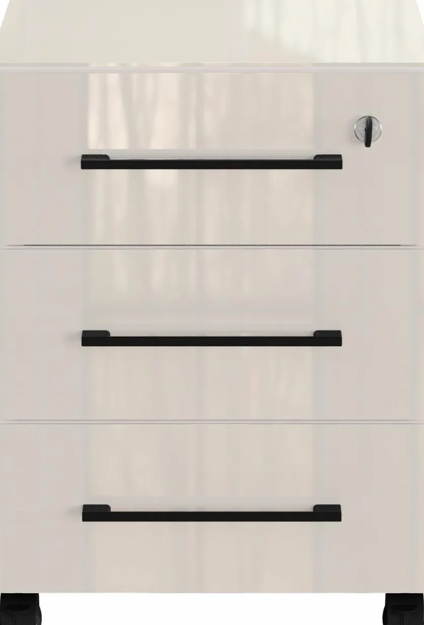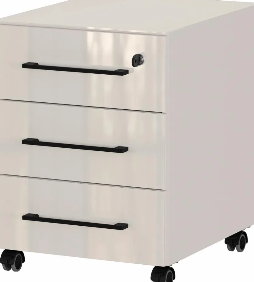 Im schlicht gestalteten, flexibel positionierbaren Rollcontainer Montevideo von Germania können Sie griffbereit und ordentlich verstauen, was auf dem Schreibtisch keinen Platz findet. Besonders wichtige Unterlagen lassen sich in der abschließbaren Schublade unterbringen. Integrierte Dämpfer ermöglichen es, den Rollcontainer Montevideo leise zu öffnen und zu schließen.