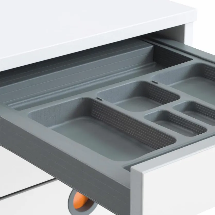 - Jeder Schubkasten belastbar bis 2,5 kg, Utensilienschale belastbar bis max. 1 kg