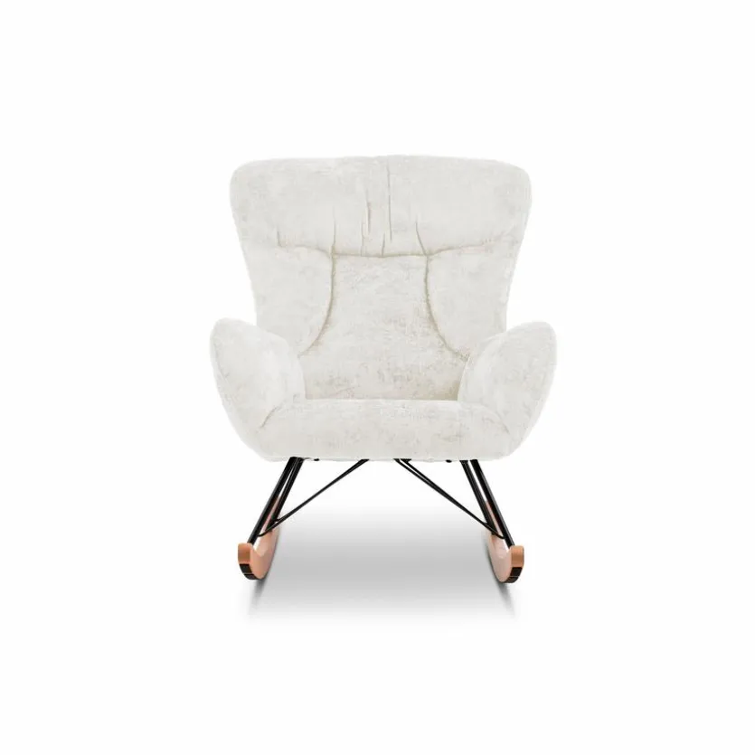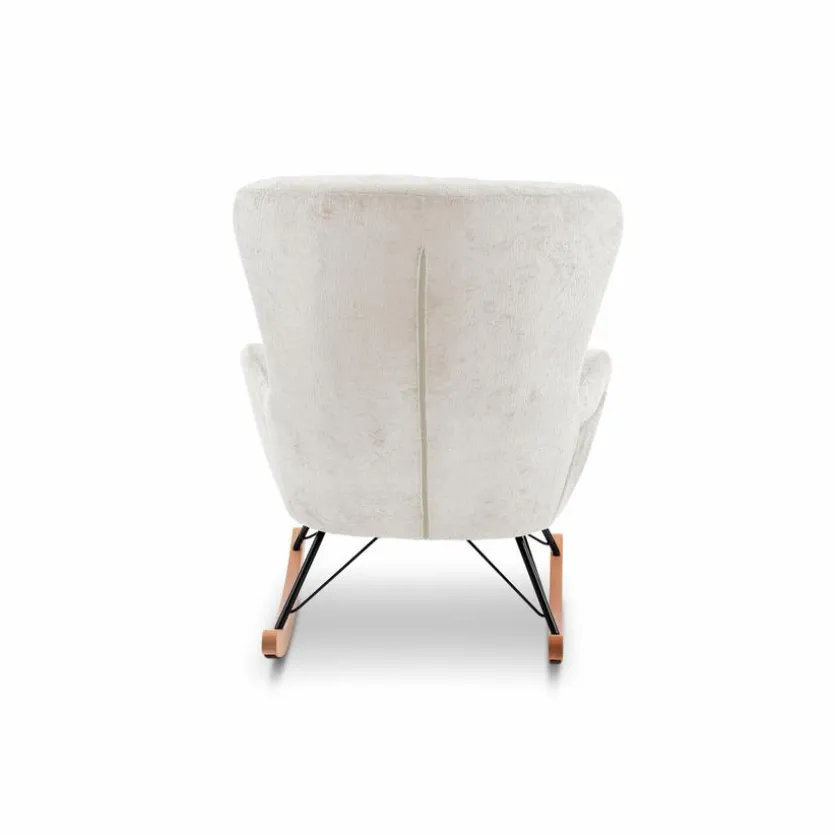 - Bezug aus Stoff in beige, Beine aus Metall in schwarz und Kufe aus Holz in Buche massiv