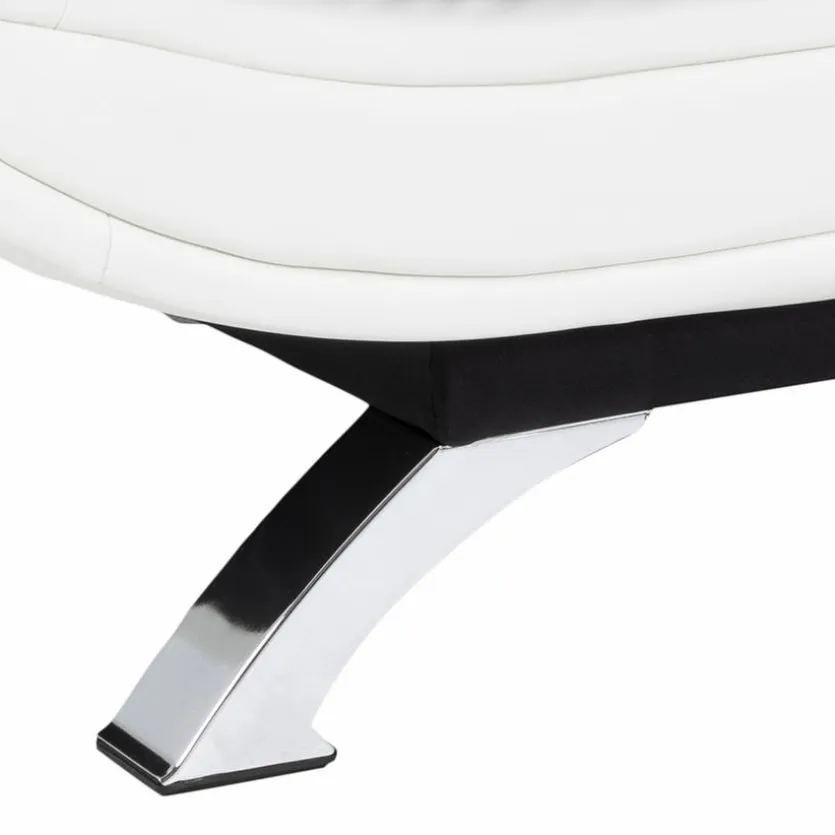 - Sitzbezug aus Stoff in grau, Korpusbezug aus Lederoptik weiß, Füße Metall verchromt