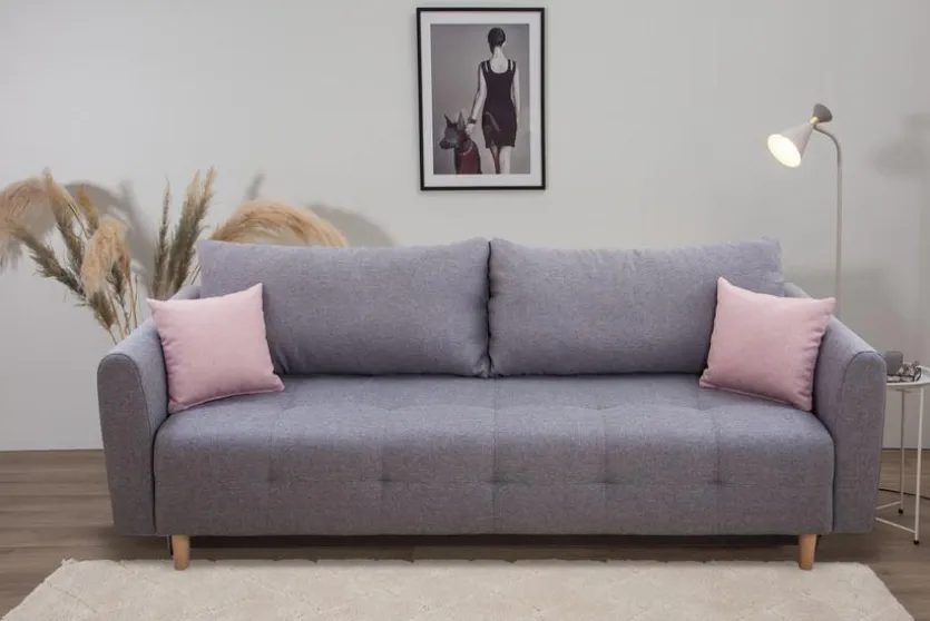 - Inkl. 2 Rückenkissen 98 x 48 cm aus Stoff in grau und 2 Zierkissen 38 x 38 cm aus Stoff in rosé