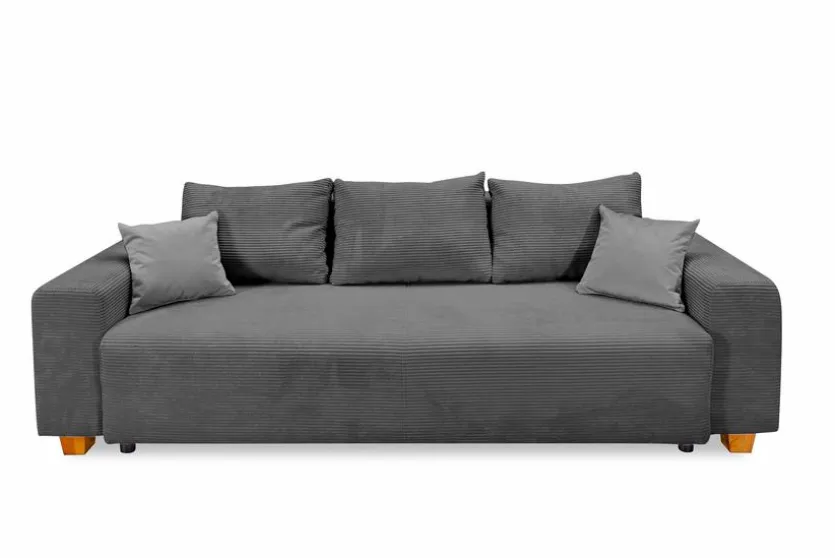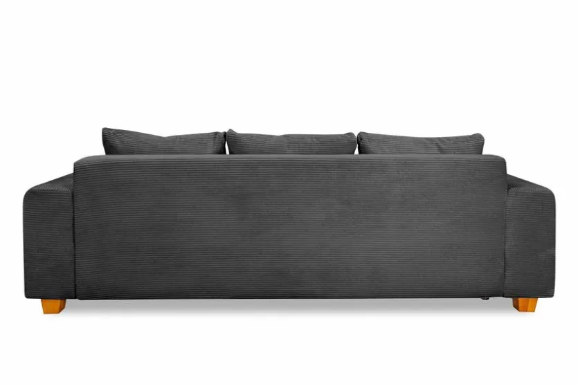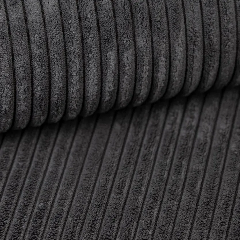 - Inkl. 3 Rückenkissen aus Stoff in Cord anthrazit und 2 Zierkissen aus Stoff in grau