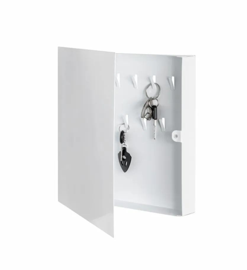 Aufgrund seiner schlichten Gestaltung passt der Schlüsselkasten aus dem Sortiment von Haku zu vielen bestehenden Einrichtungen. In dem Produkt können Sie Ihre wichtigen Utensilien an neun Haken platzsparend und übersichtlich aufhängen. Zudem besticht der Schlüsselkasten optisch durch eine hochwertige Lackierung.