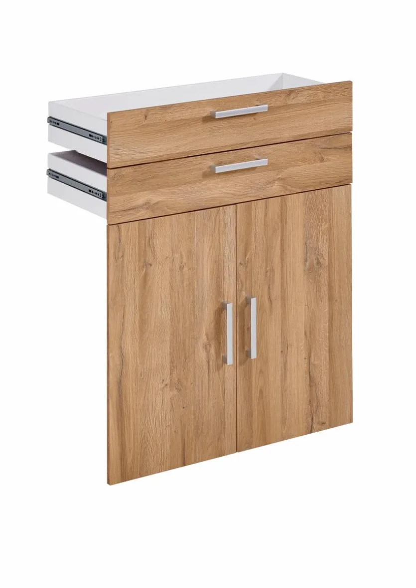 Mit dem Schrankzubehör-Set Calvia von FMD können Sie die Aufteilung Ihres Schrankes nach Bedarf gestalten. Es stehen Ihnen zwei Schubladen und zwei Schranktüren zur Verfügung, die sich passgenau in den vorhandenen Schrank einsetzen lassen. Die Fächer sind nun durch das Schrankzubehör-Set Calvia verschlossen und persönliche Dinge finden darin Platz.
