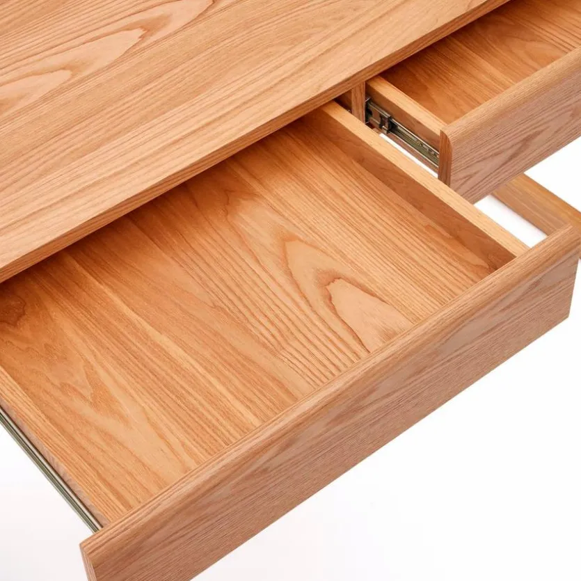Mit dem Schreibtisch Arandu aus dem Hause Kave Home erhalten Sie eine optisch ansprechende Bereicherung für Ihre Zimmer. Er besticht durch seine große Tischplatte, auf der viele Arbeitsmaterialien Platz finden. Außerdem punktet der Schreibtisch Arandu mit zwei praktischen Schubladen für das Verstauen diverser Utensilien.