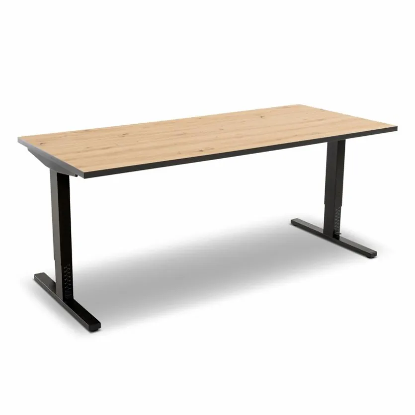 - Stufenweise manuell höhenverstellbar von ca. 63 – 91 cm durch Fußtretmechanismus an beiden Tischfüßen