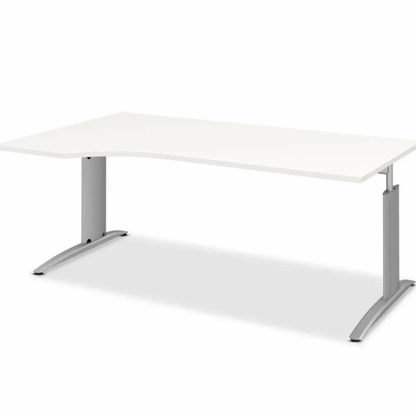 - Tischplatte aus Spanplatte mit kratzfester Melaminharzfolie in weiß, Gestell aus pulverbeschichtetem Metall in silberfarbig