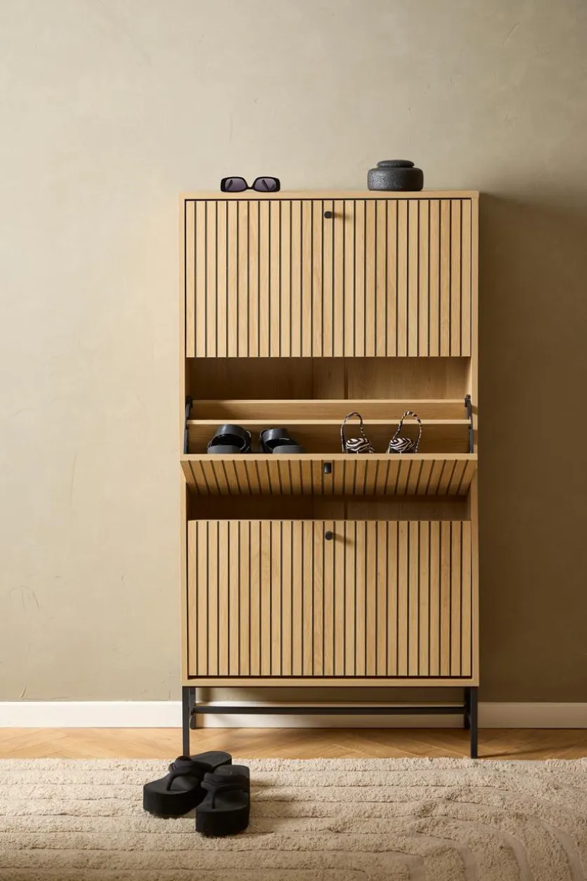 Wer Stiefel, Sandalen, Sneaker und Co. ordentlich und blickgeschützt verstauen möchte, trifft mit dem Schuhkipper Albany von Actona eine gute Wahl. Der hochwertige Schuhschrank mit Klappdesign sorgt für einen übersichtlichen Eingangsbereich und damit für einen aufgeräumten Eindruck. Klare Linien und eine qualitätsvolle Verarbeitung zeichnen den praktischen Schuhkipper Albany aus.