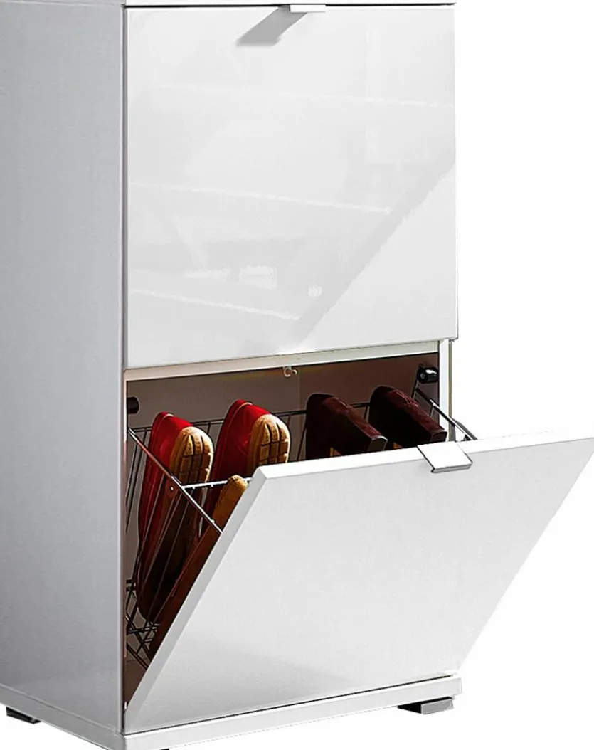 In dem geräumigen Schuhschrank Colorado der Marke Germania haben Sie viel Platz für Ihre Fußbekleidung. Er ist mit zwei praktischen Metallschuhkörben ausgestattet, in die Sie die Schuhe einräumen können. An den kleinen Metallgriffen wird der stilvolle Schuhschrank Colorado aus dem Hause Germania geöffnet.