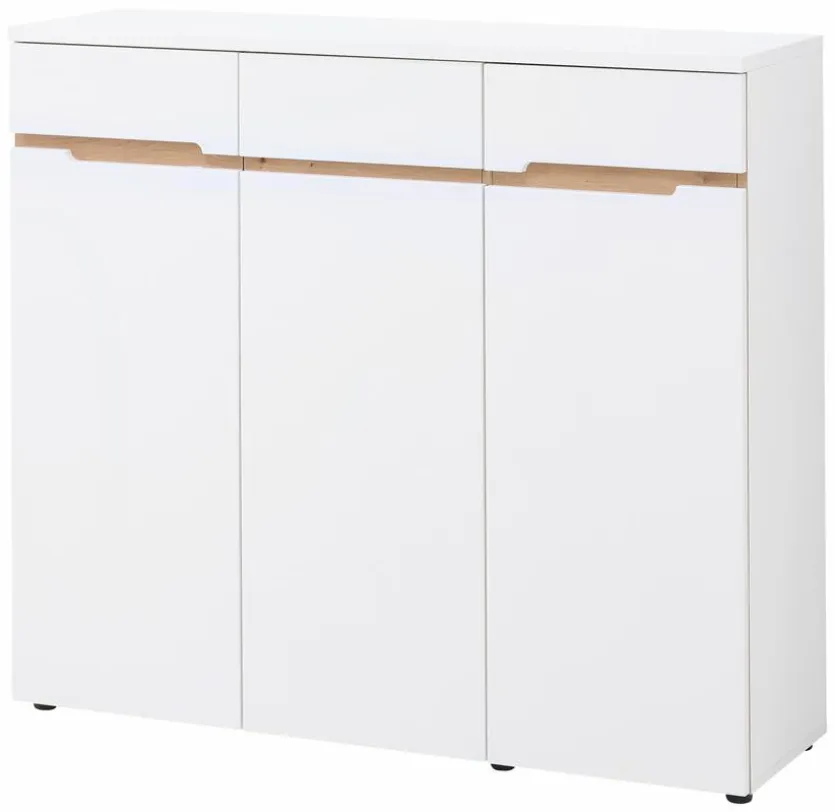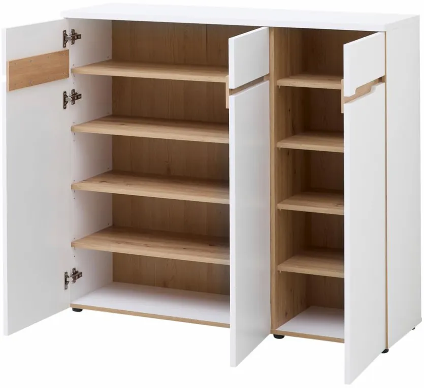 Mit dem Schuhschrank Memphis von Innostyle zieht Ordnung ein, denn in dem schlichten Kleinmöbel lassen sich Stiefel, Turnschuhe und Co. übersichtlich verstauen. Hinter drei Türen verbergen sich acht Einlegeböden, auf denen sich zahlreiche Paare abstellen lassen. Darüber hinaus bietet der Schuhschrank Memphis auf seiner Oberseite für Dekoratives oder Nützliches Platz.
