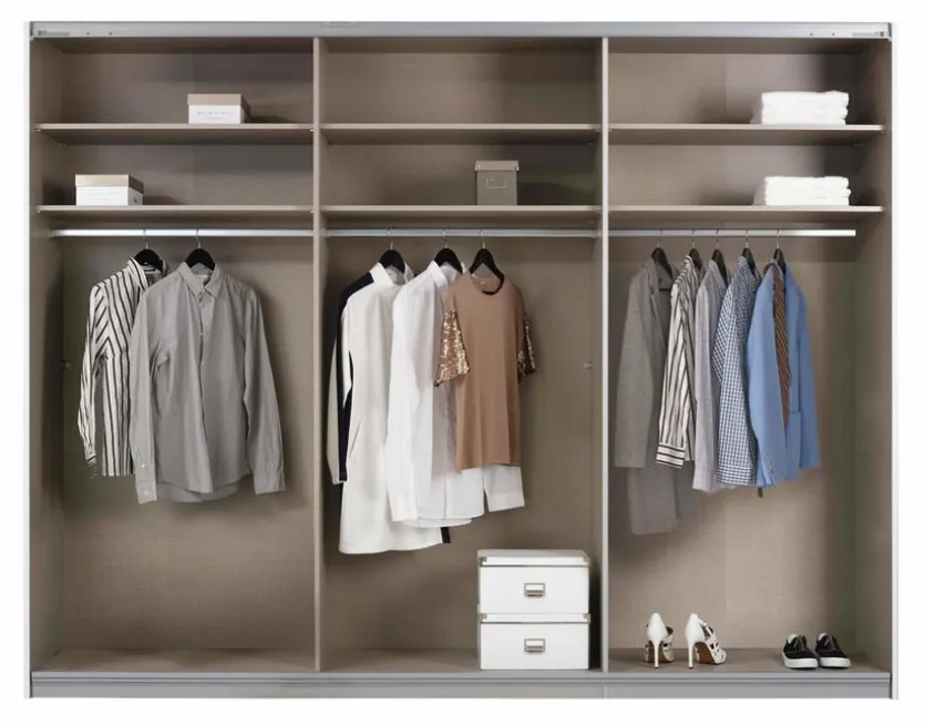 Mit dem Schwebetürenschrank Kulmbach 271×229 cm von rauch ORANGE entscheiden Sie sich für eine smarte Lösung zur Aufbewahrung Ihrer Garderobe. In diesem Kleiderschrank bringen Sie von Ober- und Unterbekleidung über Accessoires bis zu Schuhen alles unter. Nachdem Sie sich fertig angezogen haben, können Sie direkt vor dem Schwebetürenschrank Kulmbach 271×229 cm einen Modecheck machen, ob alles richtig sitzt.