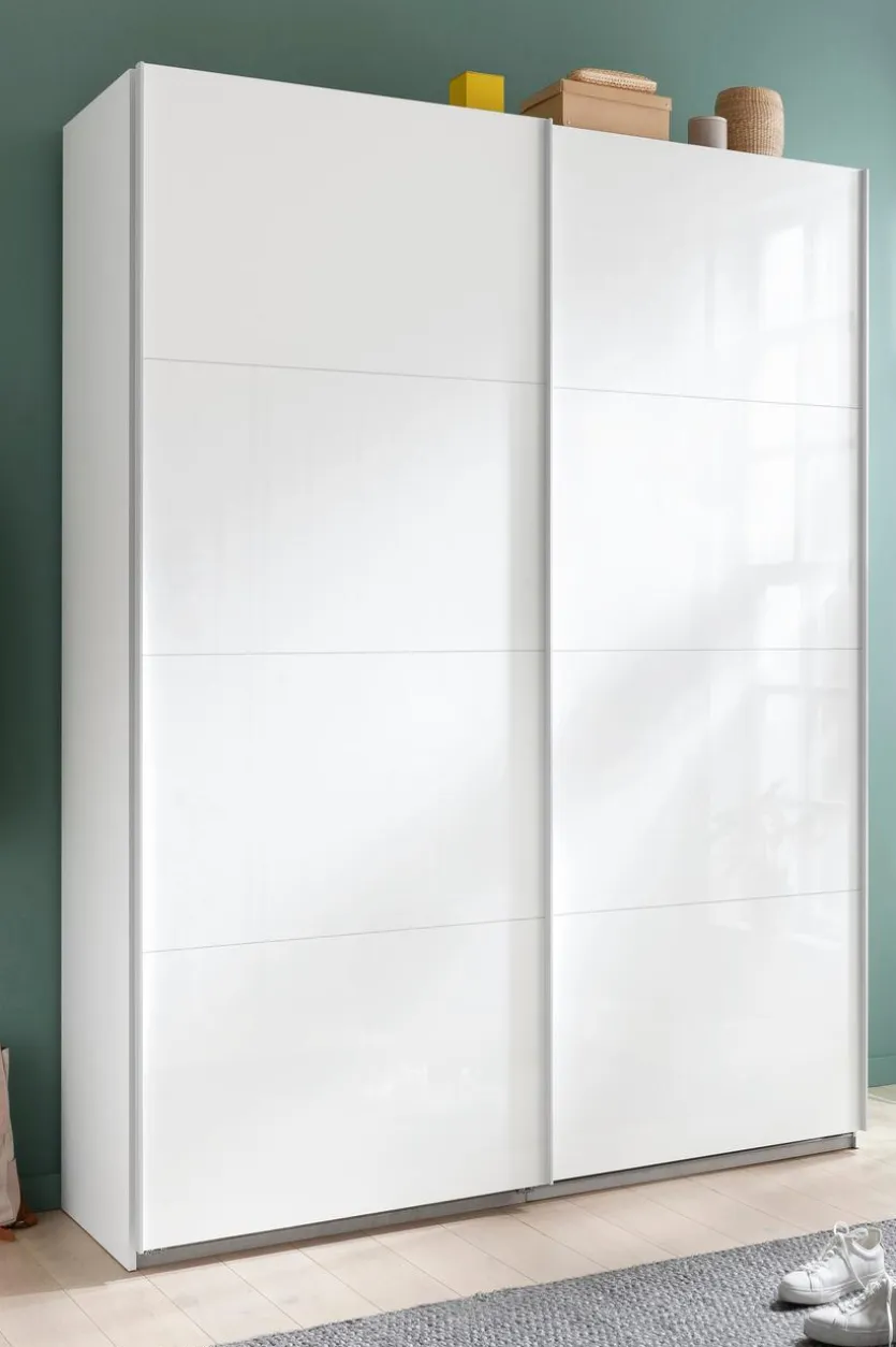 Der Schwebetürenschrank Systema 150×223 cm der Marke Composad passt sich problemlos in jedes Wohnambiente ein. Mit der hochglänzenden Front strahlt der Kleiderschrank trotz des großen Fassungsvermögens Leichtigkeit aus. Einfach öffnen und schließen lässt sich der Schwebetürenschrank Systema 150×223 cm von Composad mittels der schlichten Griffleisten.
