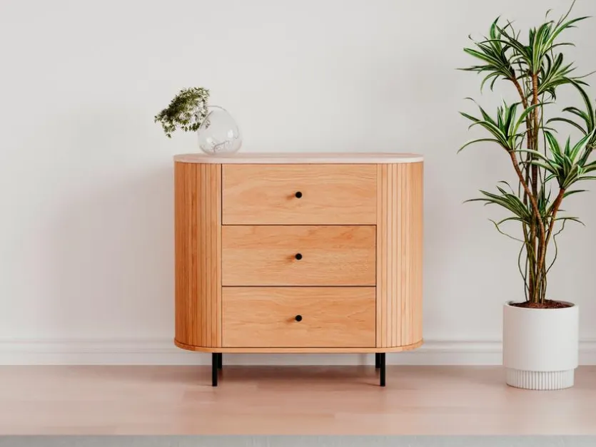 Eine hochwertige Dekor-Folie in Eiche prägt das geschmackvolle Erscheinungsbild der formschön gestalteten Kommode Fabia. Auf diese Weise lässt dieses Möbelstück in Ihrem Zuhause eine warme, einlandende Atmosphäre entstehen. Auch das schicke Metallgestell macht die erstklassig verarbeitete Kommode Fabia zu einer stilsicheren Wahl für Wohneinrichtungen unterschiedlichster Art.