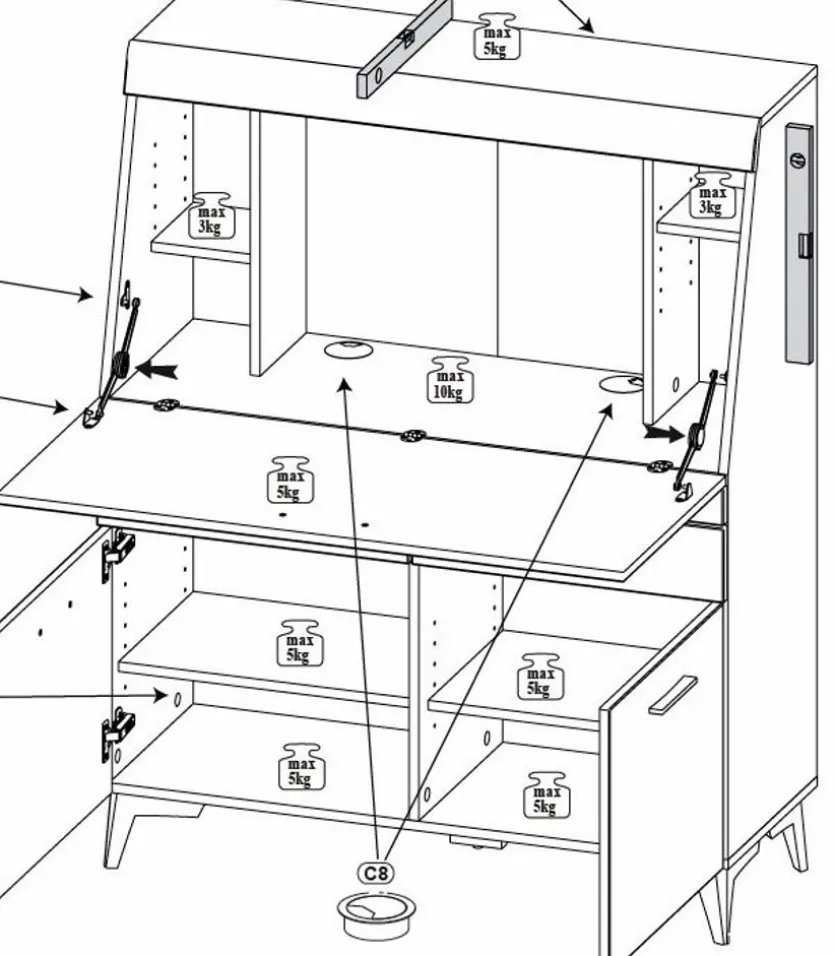- Schreibplatte belastbar bis max. 5 kg
