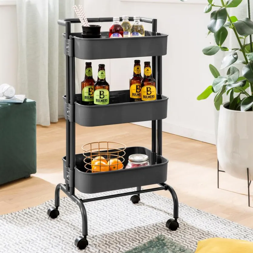 Der Servierwagen Alina gehört zu den Dingen, die Sie im Haushalt vielfältig zum Einsatz bringen können und auf die Sie letzten Endes nicht mehr verzichten möchten. Dank des schlichten, funktionalen Designs passt der Wagen zu vielen Inneneinrichtungen. Rollen sorgen dafür, dass Sie den Servierwagen Alina schnell von A nach B bringen können.