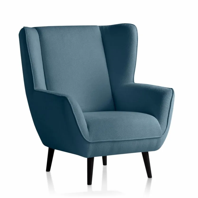 - Bezug aus Stoff (Boss) in denim (80), Füße aus Massivholz in schwarz