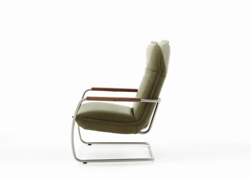 - Freischwingersessel „Hoch“ mit Holzarmteil in Nussbaum geölt (V1HS)