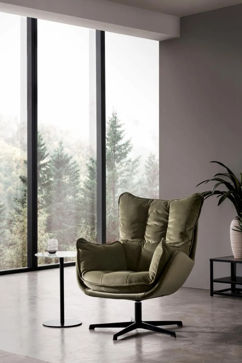 - Bezug aus Stoff (Jolie) in turtle (G054), Sternfuß (B) aus Metall in schwarz