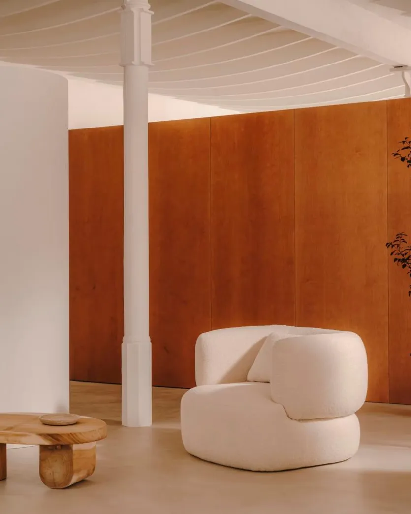 Mondän und avantgardistisch zugleich setzt Kave Home den Sessel Martina in Szene. Mit bodentiefer Silhouette und optionaler Drehfunktion komplettiert der luxuriöse Polstersessel den modernen Wohnkontext. Sein detailreiches, flexibles und dennoch kompakt wirkendes Design wird individuellen Bedürfnissen gerecht. Vollflächig schaumgepolstert, mit Rückenkissen und umlaufender Lehne bietet der Sessel Martina unvergleichlichen Sitzkomfort.