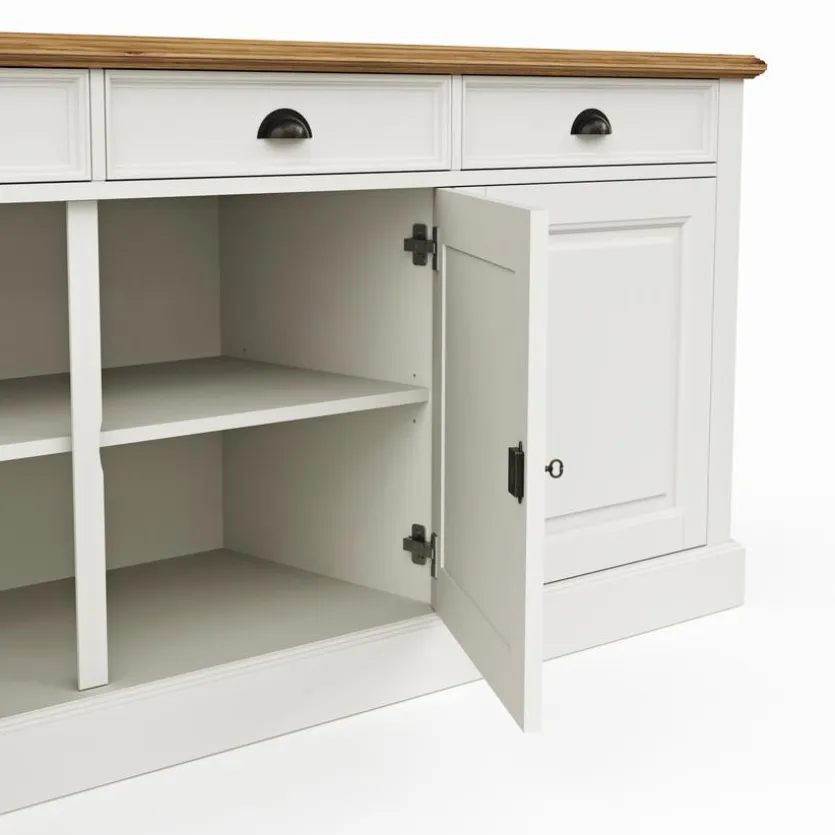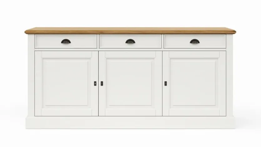 Wenn Sie ein Anhänger des Landhausstils sind, ist das wunderschön gezeichnete Sideboard Barreiro für Sie eine optimale Wahl. Korpus und Front der romantisch anmutenden Kommode bestehen aus Pappel und MDF. Punkte sammelt das Sideboard Barreiro zudem dank der stilvollen Muschelgriffe der Schubfächer und der attraktiv herausgearbeiteten Türen.
